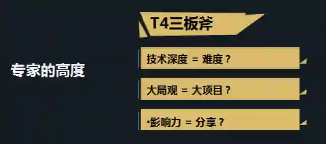 技术深度是你的深度,大局观是你的广度,影响力其实是你的纵深,就是说这个东西多大限度辐射影响到同行,这是比较高屋建瓴的看法。