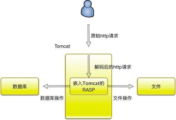 RASP技术的原理,就是直接将保护引擎注入到应用服务中,在数据库、文件系统访问、网络操作等关键点上进行保护。