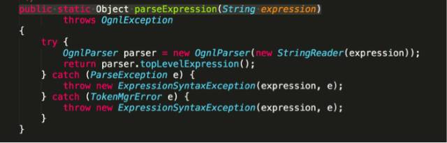 相比于WAF,RASP技术可以更加有效的对抗未知漏洞。以Struts OGNL系列漏洞举例,漏洞最终都要调用 Ongl::parseExpression 方法,来执行任意的OGNL代码、获取系统权限。