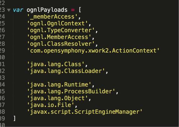 通过对表达式进行过滤,OpenRASP实现了 Struts OGNL系列漏洞的永久补丁。防护策略根据 Payload的类型,可以分为允许静态方法、命令执行、文件上传等等,同时OpenRASP提供了一组默认的策略供大家进行参考,具体可根据业务进行定制。