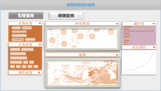 在此基础上,项目基于MDFS时空知识图谱搭建了可视化检索框架,设计实现了引导查询、精细化组合等检索功能,大大提升了用户感知数据和参与数据探索的能力。