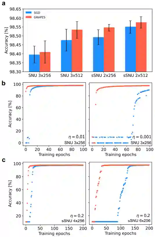 FA 算法和 SNN 模型都是弥合生物学合理性和机器学习的关键步骤。然而,在现阶段,与使用 BP 训练的 ANN 相比,它们只能取得有限的性能。例如,如结果部分所示,与 BP 相比,FA 和 SNNs 方法的准确性和收敛速度都较低,并且 SNNs 训练受到网络复杂性和超参数变化的严重影响。由于对误差信号的有效调制增强了最重要参数的更新,GRAPES 减少了此类限制的影响,从而缩小了仿生算法与标准 ANN 性能之间的差距。总而言之,该团队的研究结果表明,在神经网络优化中结合 GRAPES 和更普遍的受大脑启发的局部因素,为生物启发学习算法的性能和新型神经形态计算技术的设计的关键进展,铺平了道路。数据地址:https://github.com/IBM/GRAPES论文链接:https://www.nature.com/articles/s41467-022-29491-2