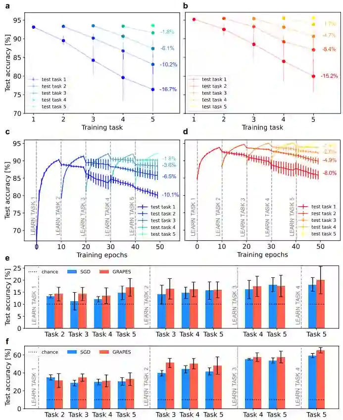 研究人员认为这些属性源于这样一个事实,即 GRAPES 有效地将与对当前输入的响应相关的误差信号信息以及网络内部状态的信息相结合,而与数据样本无关。事实上,GRAPES 丰富了基于输入驱动责任的突触更新,并通过依赖于网络驱动责任的调制来丰富突触更新,这表明节点对网络输出的潜在影响,独立于输入。这样的训练策略赋予了用 GRAPES 训练的网络在较少数量的 epoch 中实现收敛的能力,因为训练不限于仅取决于所提供的训练样本的信息。出于同样的原因,无论是在学习任务上进行测试,还是在持续学习场景中呈现未见过的任务时,这种网络都比 SGD 表现出更好的泛化能力。在这种情况下,研究人员确定了大脑中可塑性类型的并行性。响应神经元活动的突触强度变化是由两种形式的可塑性相互作用引起的:同突触和异突触。同突触可塑性发生在输入诱导期间活跃的突触处,因此是输入特定和关联的,作为输入驱动的责任。相反,异突触可塑性涉及不被突触前活动激活的突触,并作为在同突触变化后稳定网络的附加机制。因此,与网络驱动的责任类似,异突触可塑性并不表现出严格的输入特异性。该团队的算法似乎与现有的归一化方案和赢家通吃计算原语有一定的相似性。然而,由于 GRAPES 依赖于网络驱动责任的概念,它的主要计算是基于突触强度而不是突触活动。此外,以前的工作已经考虑到神经元传达突触强度的可能性。例如,2010 年 Ila R. Fiete 团队提出了异突触长期抑制的总权重限制规则:当进入(或离开)一个神经元的突触的总权重超过限制时,该神经元的所有传入(或传出)突触都会被削弱。这种机制意味着突触将有关突触权重值的信息传递给突触后节点,并且此类信息用于以非局部方式调节突触权重。第二个例子是 Kenneth D. Harris 和 Sarah N. Lewis 提出的轴突信号和神经市场理论。实验证据表明,神经元能够通过称为神经营养因子的分子携带轴突后信号,这些分子可以编码突触强度及其时间导数的信息。这些信息用于促进或阻碍突触权重变化的巩固。神经市场理论建立在轴突信号机制的基础上,并提出了大脑中神经元网络如何自组织成功能网络的模型。神经市场理论和 GRAPES 算法都依赖于关于权重及其变化的信息的传播,因此这两个框架存在一些类比。首先,轴突后信号通过调节突触更新来控制突触的可塑性。类似地,GRAPES 中使用重要性向量来调节 BP 规定的权重变化。其次,携带体重强度和体重变化信息的轴突后信号传播缓慢;同样,GRAPES 中的信息仅在每批之后应用。第三,通过神经营养因子传播的信息和 GRAPES 中的重要性都不依赖于梯度。最后,Sarah N. Lewis 的理论引入了细胞价值的概念,它衡量了细胞输出的有用性,并被定义为如果细胞死亡,网络性能的恶化。如果一个细胞的所有传入连接都为零,则该细胞被灭活,因此一个细胞的价值与该细胞的传入突触的强度有关。因此,value 可以与 GRAPES 中节点重要性的概念相关。总之,GRAPES 的基本思想受到节点重要性、误差调制和重量强度通信的概念的启发,这些概念得到了研究树突整合、突触缩放和轴突后信号作用的实验的支持。虽然生物学灵感基于这些机制,但只有类似 GRAPES 的可塑性调制的高级概念与神经回路中观察到的可塑性调制原理兼容。GRAPES 的好处源于对误差信号的调整。调制因子的非均匀分布,加上向上游层的传播,使得 GRAPES 在训练期间能够极大地增强突触更新的子集。因此,与 SGD 相比,小群突触能够在更大程度上增强或减弱。从初步调查来看,GRAPES 似乎将网络权重传递给更具生物学合理性的分布,特别是重尾分布。IBM 研究院的研究人员认为 GRAPES 所展示的特性可能源于这种重量分布。该团队正在进行的工作目前正在寻求对这一现象的更全面的了解。值得注意的是,他们的结果表明,GRAPES 提供了一种有前途的策略,可以减轻由硬件相关约束(例如噪声和精度降低)引起的性能下降。这些约束在许多方面反映了生物电路,因为突触传递受噪声影响并且神经信号被量化。有趣的是,GRAPES 保留了与生物过程的许多相似之处。因此,该团队认为 GRAPES 的生物学机制可能在克服与硬件相关限制相关的限制方面发挥核心作用。此外,他们认为这种受大脑启发的特征是 GRAPES 对生物启发模型的好处的根源。已经证明,GRAPES 不仅改进了标准 ANN 的基于 BP 的训练,而且还显着提高了使用生物学上合理的信用分配策略(例如 FA 和 DFA)训练的网络以及依赖于尖峰神经元动态的网络的性能。