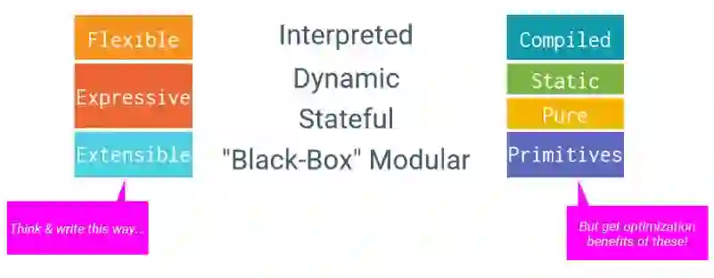 在拥有强大的硬件之后,我们需要更强大的深度学习框架来支持这些硬件和编程语言,因为快速增长的机器学习和深度学习需要硬件和软件都能具备强大的扩展能力。因此,Jeff Dean 还详细介绍了最开始由谷歌开发的深度学习框架 TensorFlow。