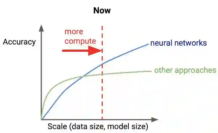 如今,神经网络与其他方法随数据、模型大小变化的准确率对比图如下: