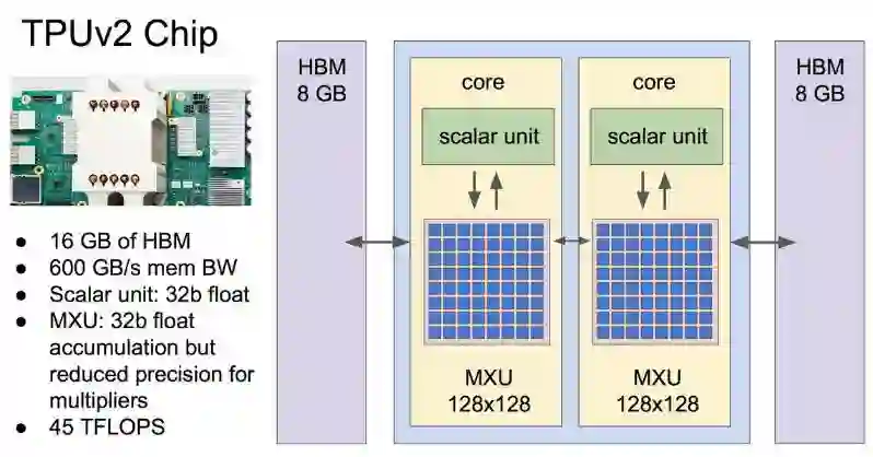 每秒的浮点运算是 180 teraflops,64 GB 的 HBM 存储,2400 GB/S 的存储带宽
