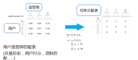 基于交易历史、用户对造型师打分和两者资料的匹配情况。它会考虑到用户跟造型师的属性,如用户是妈妈,会尽可能推荐一位也是妈妈的造型师。