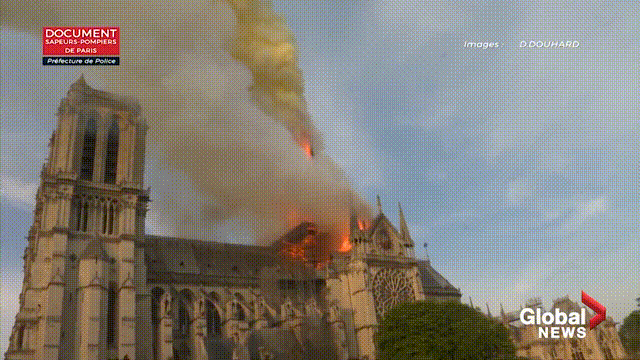 那场大火整整烧了14个小时,教堂塔尖在大火中轰然倒塌,如今修复仍在继续。