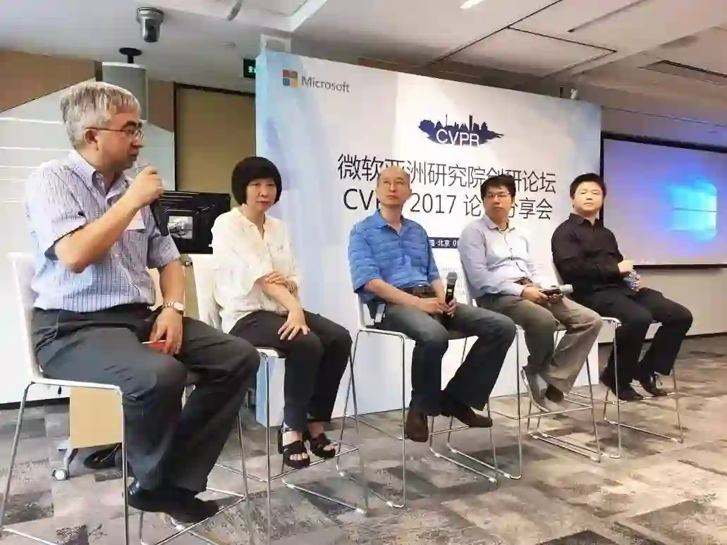 上周,“微软亚洲研究院创研论坛——CVPR 2017论文分享会”在微软大厦举行。来自国内外计算机视觉领域学术界、工业界的优秀代表们携各自在CVPR 2017发表的最新研究和技术观点进行了分享,交流。而在此次活动上由微软亚洲研究院主管研究员罗翀主持的圆桌讨论环节中,五位计算机视觉领域的资深专家就目前计算机视觉领域研究中的热门问题给出了各自的见解。他们分别是: