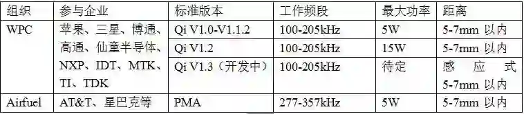 电磁感应式无线充电优势在于方案相对成熟,应用的终端产品众多。同时两大无线充电组织WPC和Airfuel(为A4WP/PMA合并后的新联盟)均有相关标准的支持,并且参与的大型企业众多。