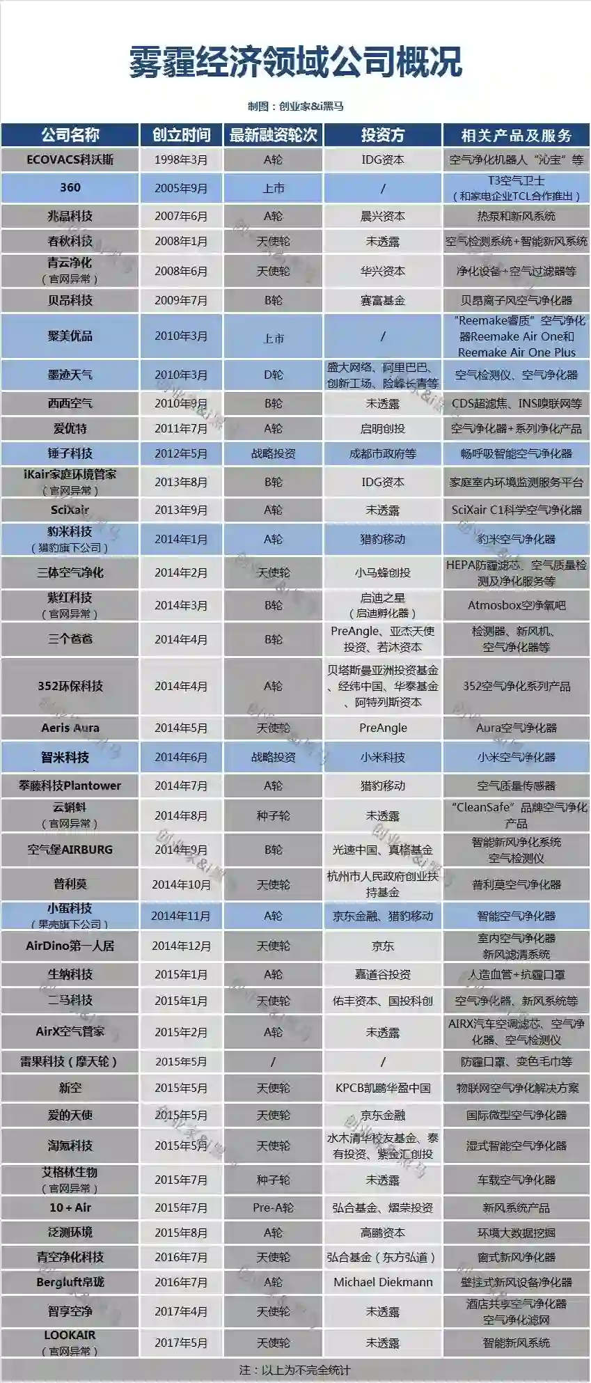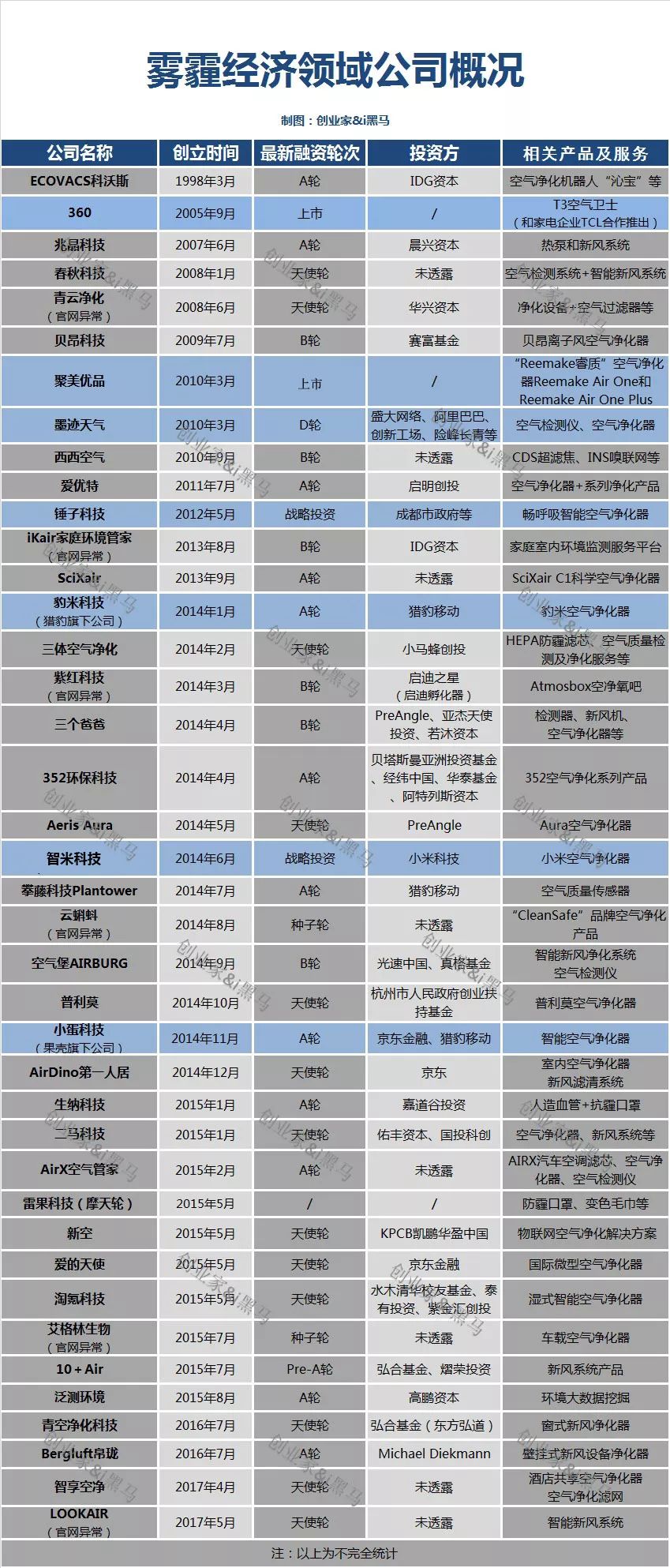 “进入雾霾季以来,几乎每天都有相关新产品的发布,或者新融资的诞生”。一名行业观察者对创业家&i黑马说道。