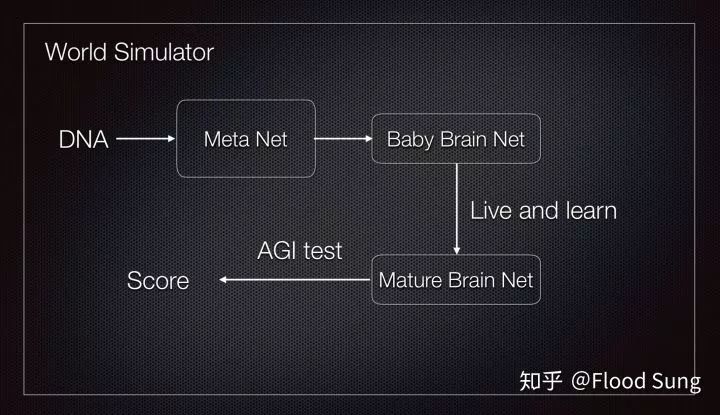 AI-GAs: AI-generating algorithms, an alternate paradigm for producing general artificial intelligence(https://arxiv.org/abs/1905.10985) 读罢深感和我对AGI的思考不谋而合,特和大家分享一下这里面的思想。 先说结论:AI-GA这篇文章虽然是泛泛而谈,但是我认为是一篇具有历史性意义的文章,因为这里面揭示的就是真正实现AGI的方法论。 我们来看一下paper里面的这一段话: 什么感觉? 道破天机的感觉! 在Jeff Clune眼里very intelligent people会是什么人呢?只能是最顶级的学术大牛了,比如paper acknowledgements里面的Peter Dayan (德国马普所)Zoubin Ghahramani (剑桥大学)还有一堆openai和uber ai lab的人。 为什么Jeff Clune会说“It was not an easy decision for me to make." ?因为以前AGI根本就是一个概念,是触碰不到的地方。具体的实现途径是什么?没人说清楚。 DeepMind和OpenAI推崇的DRL深度强化学习就是AGI吗?不是。为什么呢?因为AGI应该内部就包含了DRL,而不是DRL创造AGI。后面的具体分析我们会说DRL的作用,确实是AGI必不可少的组件。 现在,Jeff Clune以个人名义写了AI-GA,可以说把AGI的实现途径说清楚了。我们知道,AGI这一个目标在Alan Turing提出图灵测试的时候可以说就有了,甚至Alan Turing在他1950年的人工智能开篇论文Computing Machinery and Intelligence中说了: 这实际上已经道明了AGI的实现途径了。牛逼的图灵,才提出人工智能就已经睿智的看到了实现的方向。我们后人不过是把图灵的思想具体化而已,而Jeff Clune提出的AI-GA正是一条具体化的实现道路。 那么,就让我们一起来道破天机吧!(以下内容包含大量个人思考)