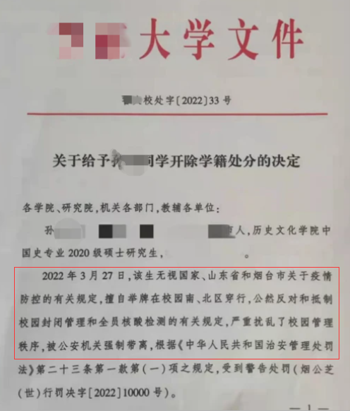 该校一名硕士研究生抵制封校管理以及全员核酸检测