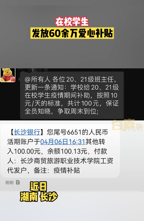 当然,有的学校就做的很好,小募注意到,近日,湖南长沙一高校为确保学生疫情期间的生活质量,为在校的6000余名学生发放了60余万元的爱心补贴。