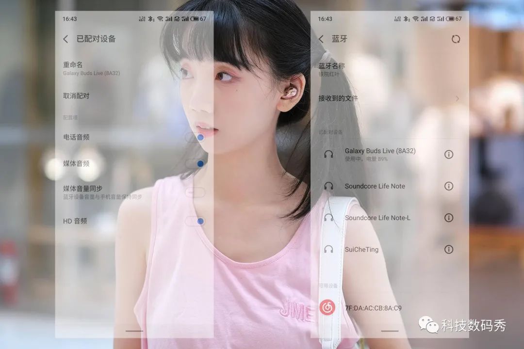 由于个人手机并非三星手机,所以无法体验耳机连接的弹出窗口,如果您使用的是三星手机并且有Galaxy Wearable应用程序,还可以实时查看Buds Live的状态并进行自定义设置。对于安卓手机,记得将蓝牙界面的HD音频打开,音质会更加无损和高清晰。如果是三星手机的话,Buds Live还支持利用您的声音直接实时唤醒手机里的Bixby,进行语音交互。