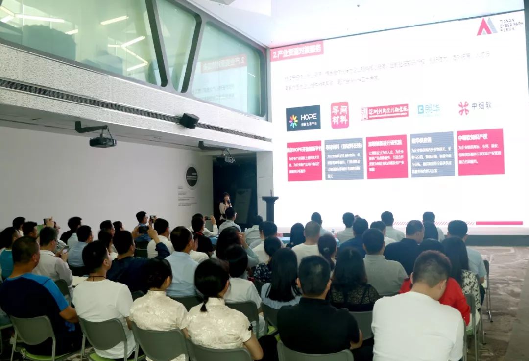 天安数码城集团创新发展部总监刘一平,在活动上对天安数码城创新发展部服务体系进行了介绍,并对天安数码城在今年6月中旬即将开展的“英国创新发展研修团”进行了推介。此外,海尔HOPE开放创新平台运营总监朴成杰以“HOPE助力产业研发创新”为主题、寻材问料CEO聂雷以“智能硬件、人机交互与创新材料CMF趋势研究报告”为主题、深圳创新设计研究院工程中心总监朱红红以“深圳创新设计研究院案例”为主题、朗华在线总经理傅先锋以“MRO工业品集采外包整体解决方案”为主题、深圳中细软知识产权运营有限公司国际大客户部总监王锴以“创新型企业在技术提升中规避知识产权侵权的应对策略”为主题,作了相关产业赋能方面的推介。