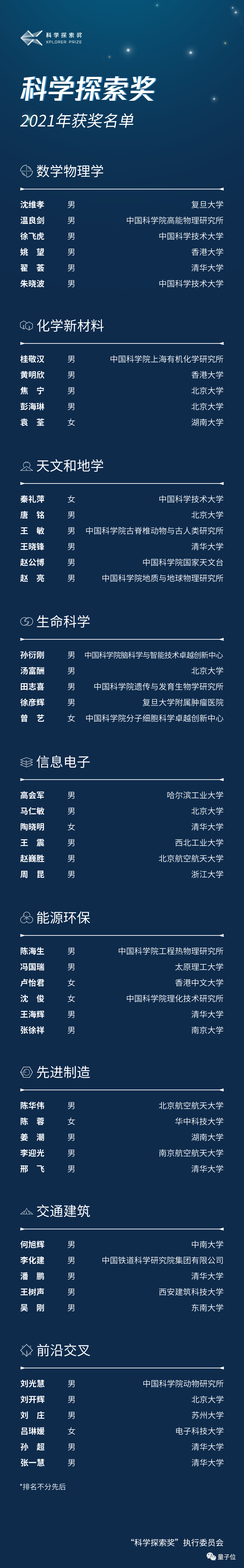 获奖人较去年更为“多元化”,是科学探索奖今年最大的特色。