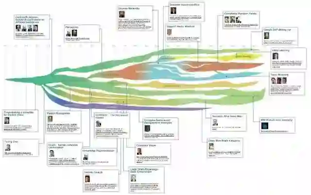 此前,AMiner曾经绘制过一副AI历史图,标出了AI历史节点上的关键概念和人物: