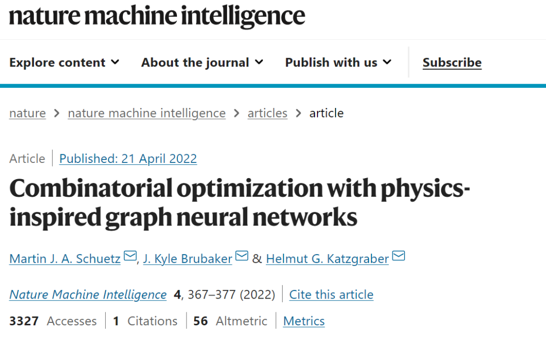 Martin JA Schuetz 等人 2022 年的研究《Combinatorial optimization with physics-inspired graph neural networks》[4]提出使用受物理启发的无监督图神经网络(GNN)来解决图上的组合优化问题,这种方法似乎很有前途,并发表在具有高影响力的期刊(《自然 · 机器智能》)上。该研究测试了 GNN 在两个标准优化问题上的性能:最大切割和最大独立集(MIS)。这种新提出的 GNN 优化器有一个非常好的特性:它可以扩展到许多更大的实例问题上。