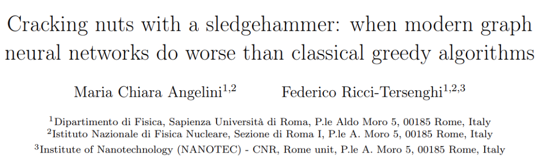 不过,最近一篇新论文《Cracking nuts with a sledgehammer: when modern graph neural networks do worse than classical greedy algorithms》对 Martin JA Schuetz 等人的研究提出了质疑,认为 Martin JA Schuetz 等人提出的 GNN 优化器是「用大锤敲坚果( Cracking nuts with a sledgehammer ),类似于迫击炮打蚊子」,既浪费资源,效果也不好。
