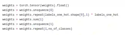 在这里,我们得到权重的独热值,这样它们就可以分别与每个类的损失值相乘。