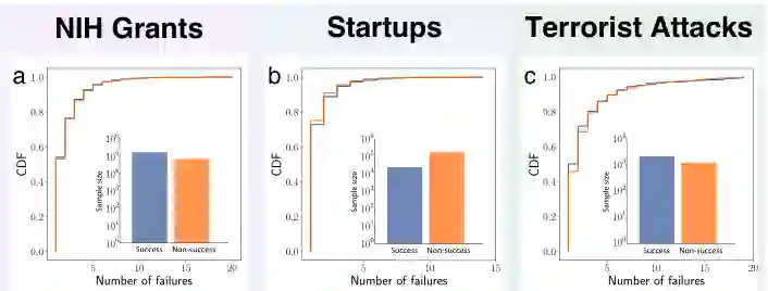 以上这些结果表明,如果一次尝试的失败是构建在前期失败的基础之上,就能在早期阶段,通过重复失败的动力学信息刻画出相关的统计特征。传统上,人们会把胜败归功于运气、学习能力、和个体的差异。而本论文的研究者通过他们所构建的新模型给出了新的观点——