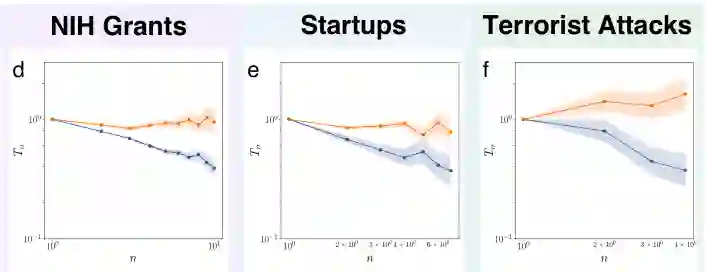 NIH Grants、Startups、Terrorist Attacks三个数据集真实案例所反映出的表现结果与失败曲线