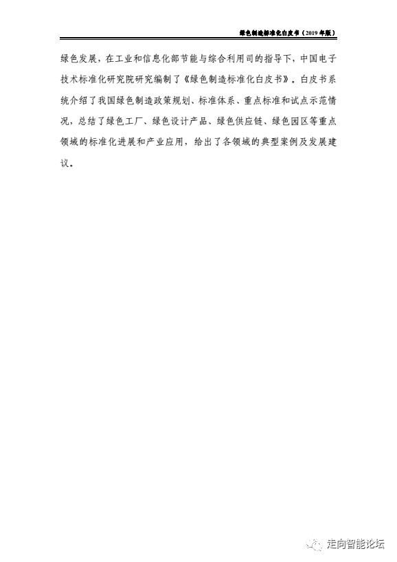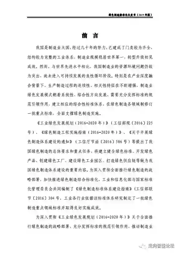 在“走向智能论坛”微信公众号回复“20190910”,可免费下载“绿色制造标准化白皮书(2019年版)”完整报告。