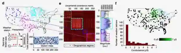 现实数据:来自于美国 270 个气象站的 1 小时内降雨量资料,收集过程历时 6 个月。用数字 1 代表一个小时内有降雨,数字 0 代表 一个小时内没有降雨。经典的 k 均值聚类算法和 IBM 内存计算方法就 245 个气象站的分类达成一致,12 个 k 均值标识为『相关』的气象站被内存计算方法标识为『不相关』,13 个内存计算标识为『相关』的气象站被 k 均值标识为『不相关』。