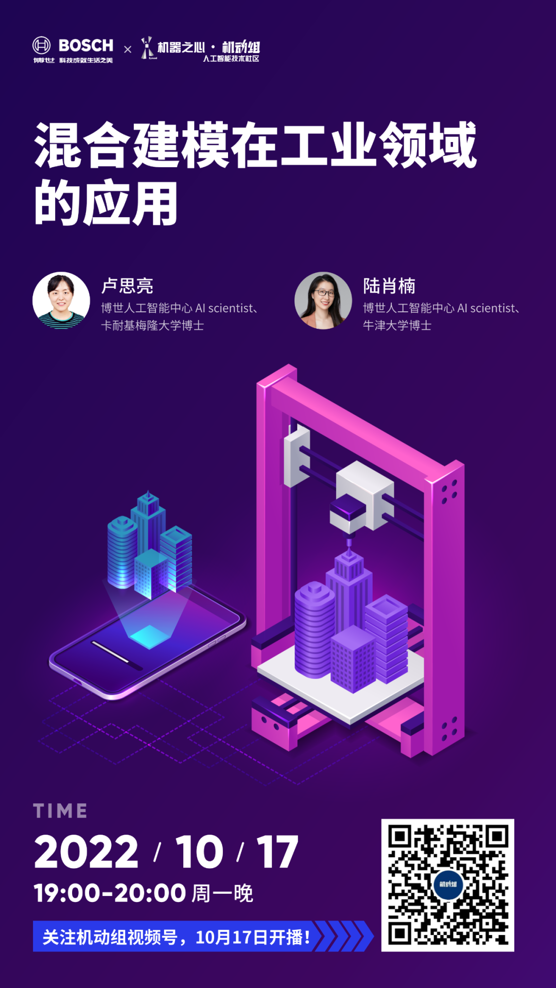 10月17日19:00-20:00,来自博世中国的卢思亮、陆肖楠两位专家将深入解读「混合建模在工业领域的应用」。这次分享着重于混合模型建模,一种结合机理模型和数据驱动模型的思路,帮助大家学习到混合建模的核心,为踏入工业界打好基础。