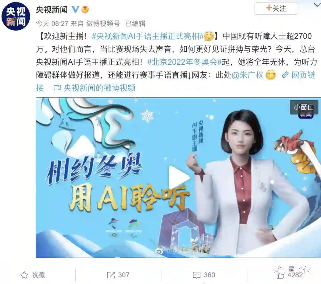 冬奥会越来越近,为了让听障群体(中国有2700万,全球有4.3亿中度及以上程度的患者)也能深切感受比赛的激情,央视和百度联合推出了这个可以打手语的数字人。