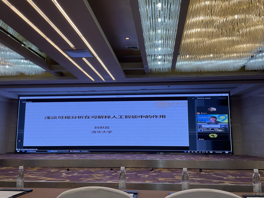 主持人为大会主席青海师范大学的耿生玲教授,报告人是清华大学的刘世霞教授。报告题目为《以数据为中心的可解释人工智能》,刘世霞教授提到在机器学习中,训练数据的质量决定了数据分析效果的上限,而模型和算法的改进只是不断逼近这个上限。目前可解释人工智能领域中数据存在的三个问题:数据标注错误、数据覆盖窄以及数据标注少。刘世霞教授基于上述三个问题展开报告,介绍了基于可视分析的数据质量可解释框架。该框架将机器学习方法和可视化技术紧密集成在一起,帮助数据专家更好地理解训练数据中的错误和不一致,提高数据的可用性。最后,结合具体的应用实例,如标注数据修正和数据集偏差消除等,介绍了基于该框架研制开发的可视分析方法与技术。