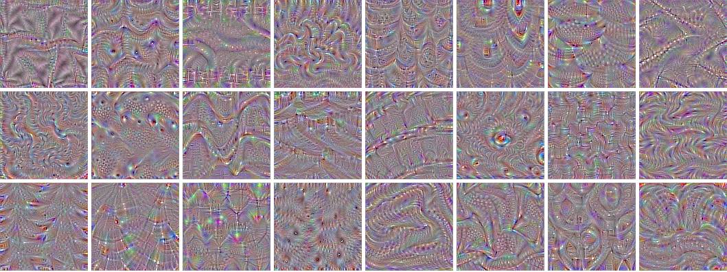 过程不总是很顺利:在刚开始的时候,网络只能生成红色和黄色。我最初用 ReLU 函数作为最后一层的激活函数,由于它只能将数字映射为正值,而无法输出负值,即蓝色和绿色的色谱。通过改为使用 tanh 为激活函数解决了这个问题。