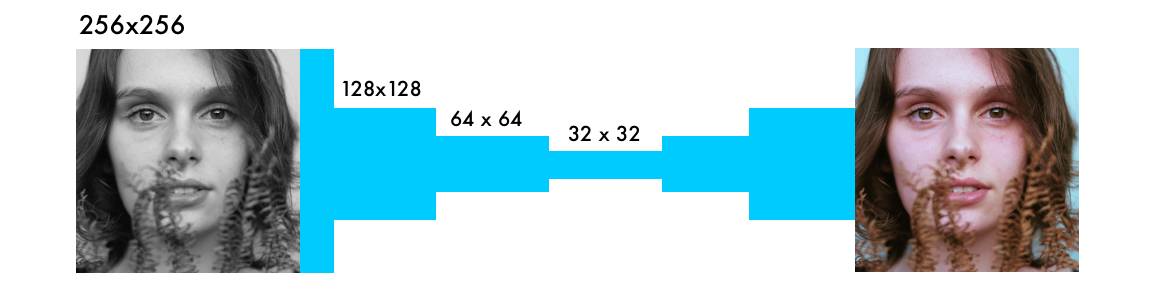 上色网络保持图像比率的稳定。这通过添加空白填充(如上图所示)来完成。此外,每个卷积层剪切图像。它通过参数 padding='SAME'来完成。