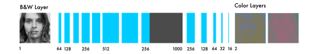 对于黑白图片,每个图层的数值都是 0-255 之间的相同值。如果所有通道数值为 0,则这个像素为黑色。你可能知道神经网络会在输入与输出之间构建联系。将这个思路归纳到我们的着色任务中——神经网络需要找到灰度图像和彩色图像之间的联系。
