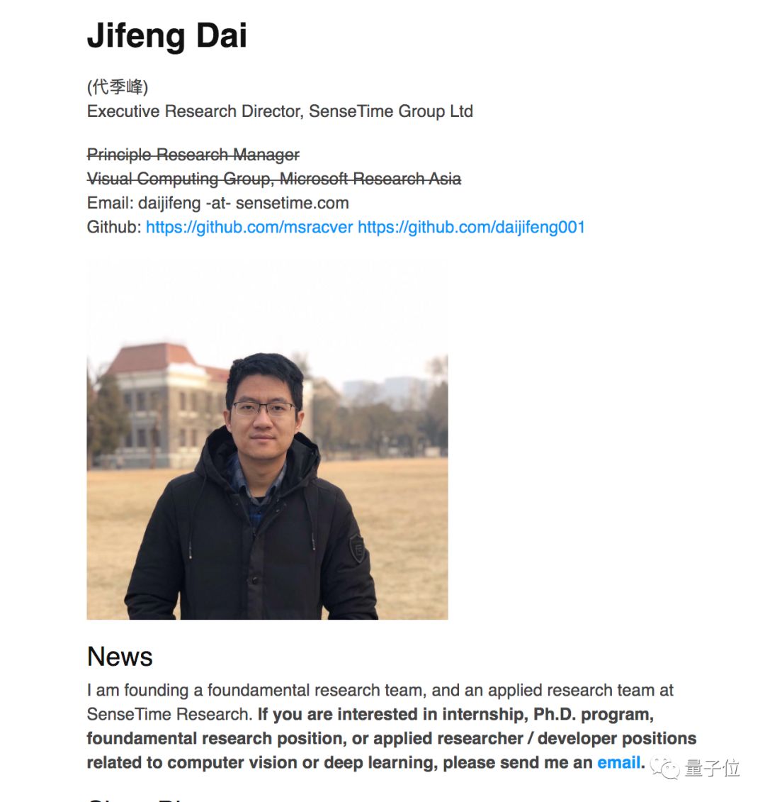 他本人的网站已经更新了最新的履历,职位由MSRA视觉计算组首席研究经理,变成了商汤执行研究总监。