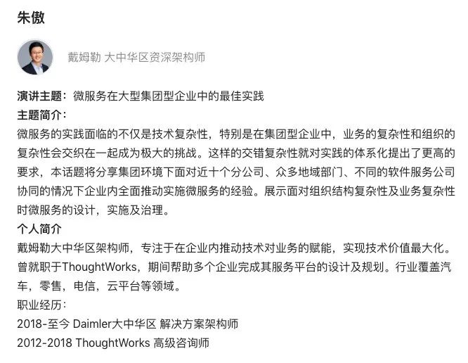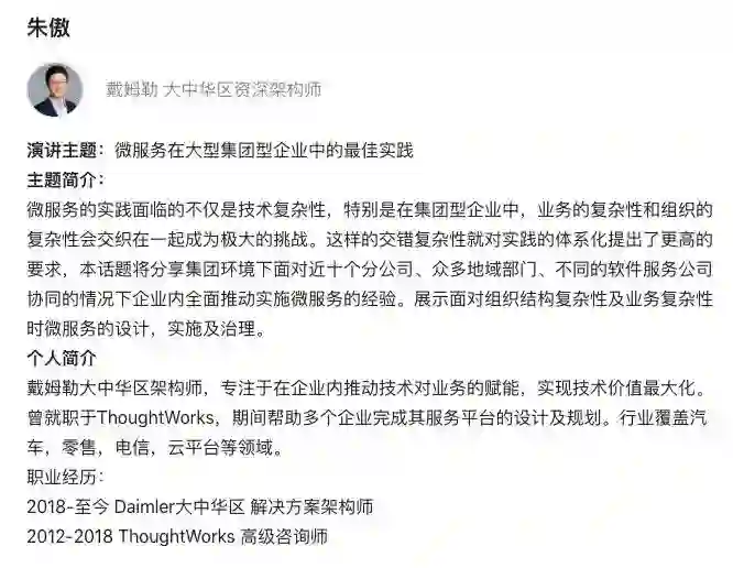 大型集团型企业的微服务实践?11月1-2日,GOPS,戴姆勒大中华区资深架构师与您面对面交流。