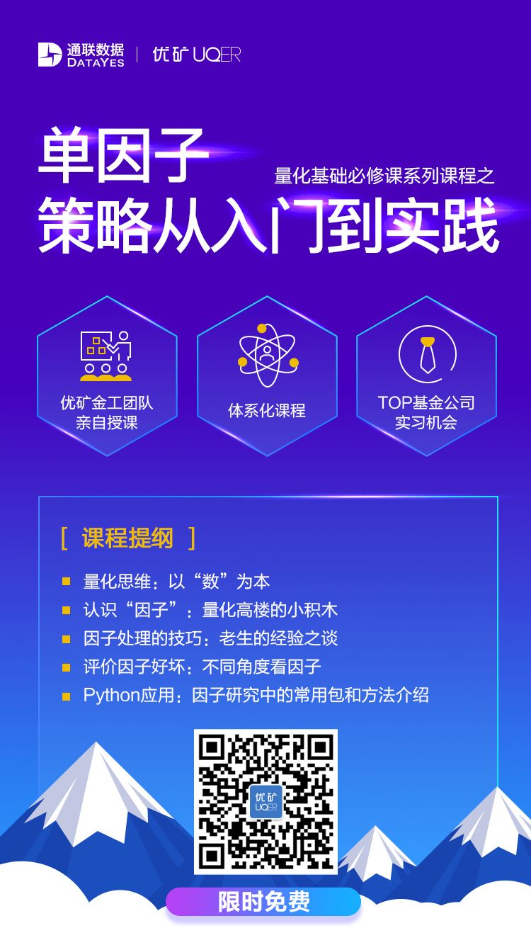 所以,想使出一招“飞龙在天”么?快扫描下方二维码或是访问优矿官网进入“量化学堂”从单因子策略学起吧!!