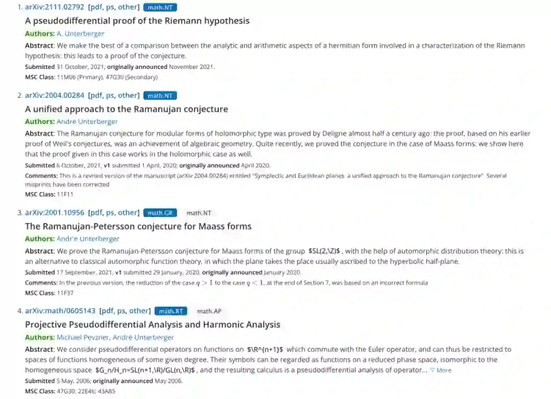 对于 André Unterberger 这篇证明黎曼猜想的论文,有知乎用户吐槽称,「有点像 mathgen(一种数学论文生成器)自动生成的。」