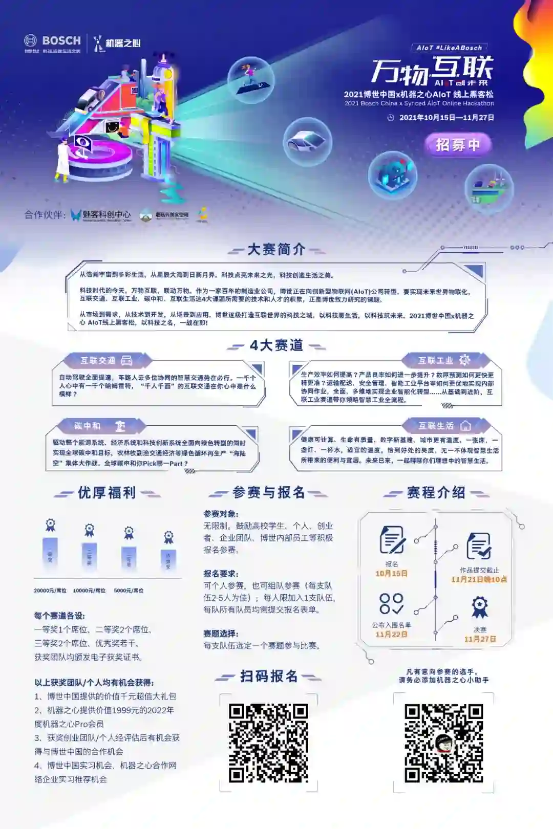 2021 博世中国 x 机器之心 AIoT 线上黑客松,20万奖金等你来赢!