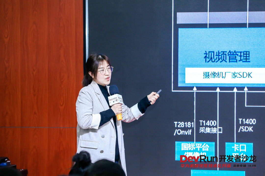 紧接着,华为 HoloSens IVS 专家刘璇带来了以《基于智能视频存储打造行业特色应用》为主题的精彩分享。她为大家介绍了包括视频管理及视频分析的北向接口,包括人像应用、车辆应用以及综合安防应用等各类应用厂商可以基于华为智能视频存储开放能力实现业务应用的快速开发。随后她又为大家详细拆解了 IVS 北向接口的接口类型、应用案例及场景化方案。
