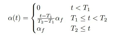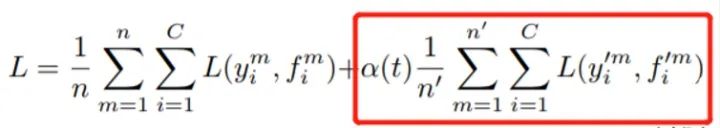为了平衡有标签数据和无标签数据的信号强度,如上所示,算法在目标函数中引入了时变参数 α(t),其数学形式如下: