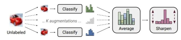 MixMatch 可以认为是近几年半监督学习技术的集大成者,融入了前面提到 Consistency Regulation、伪标签思想、entropy regularization 以及 MixUp 技术,最终实现了显著优于之前半监督学习技术的效果。