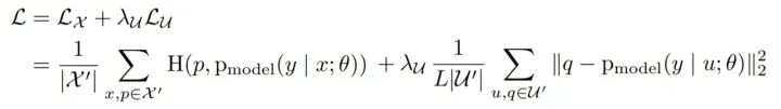 其中,左边第一项为有标签数据的loss项,而第二项则为无标签数据的loss项。