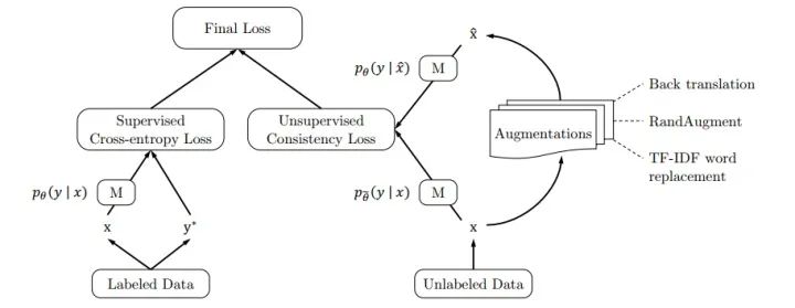 而 UDA 的训练框架本身又足够简单,整体框架如下图所示: