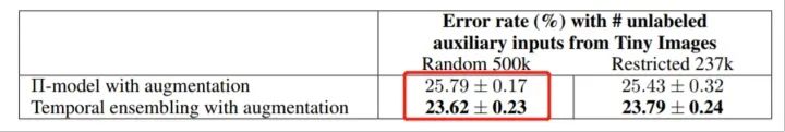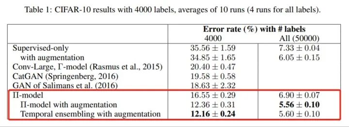 Temporal ensembling Model 这篇论文对这一问题也进行了对比实验: