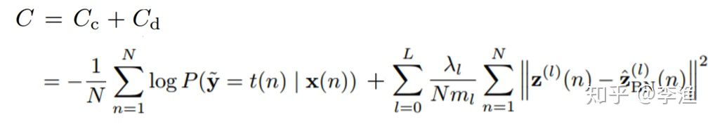 在此基础上,作者通过改造 Ladder Network 来实现半监督学习,整体的网络结构如下图所示: