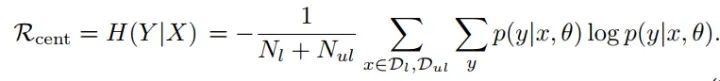 接下来,研究人员在目标函数中加入了第三项 entropy minimization 项,即要求模型无论对于有标签数据还是无标签数据,都要求其熵尽可能小。这个正则项正是 Pseudo-Label 模型中的第二项(红框部分):