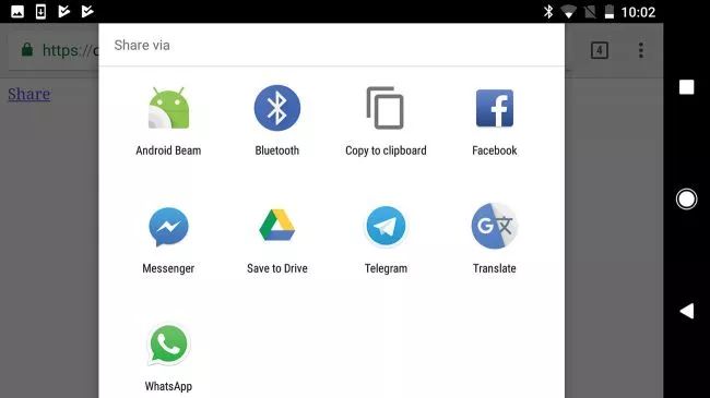 在兼容的浏览器上,Web Share API 将触发操作系统的共享对话框。
