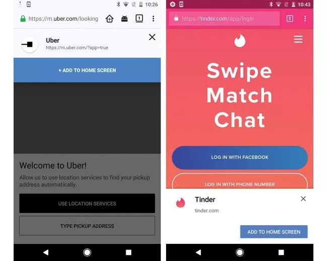 2017 年,Chrome 为 Android 用户推出了一项新功能:WebAPK。现在,用户在安装 PWA(只要它符合要求)时,Google Play 服务器会创建一个 APK(Android 包,原生的应用程序容器),并将其安装在设备中,就好像它是来自 Play Store 的一样。用户不需要启用不安全来源或做出任何其他设置。